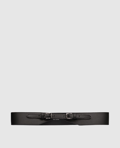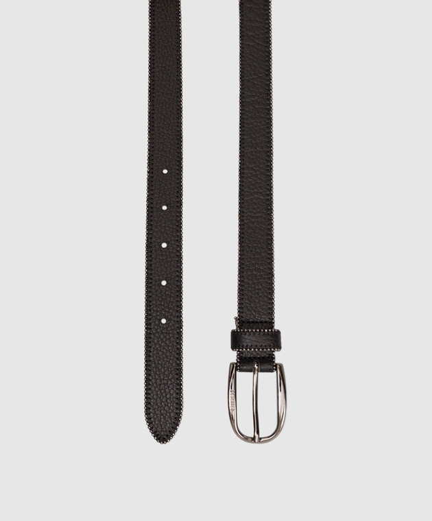 Чорний шкіряний ремінь з гравіюванням логотипа