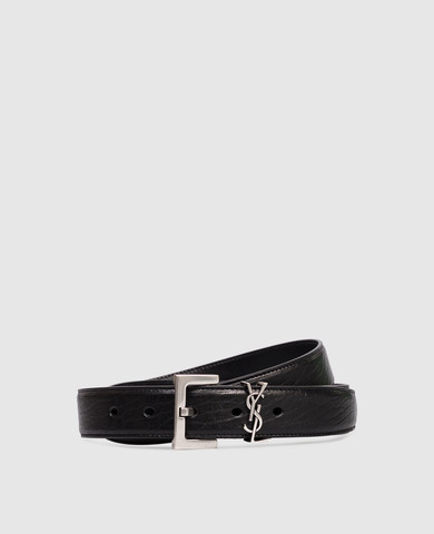 Чорний шкіряний ремінь з монограмою логотипа
