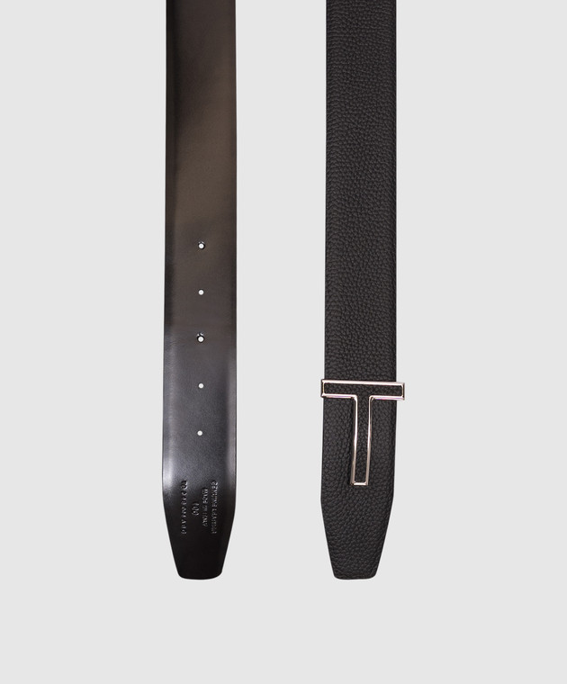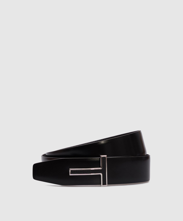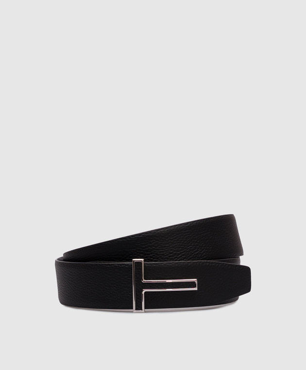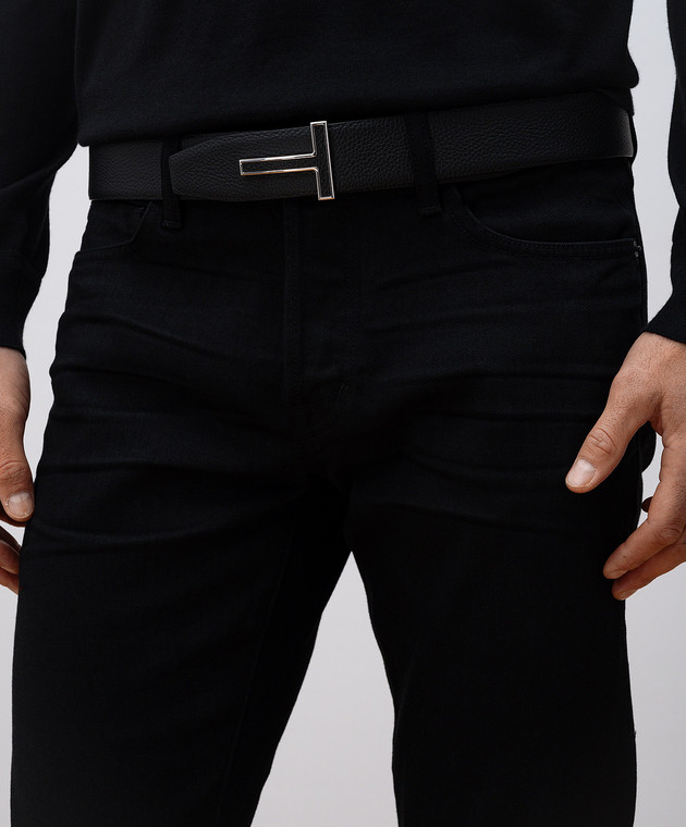 Чорний шкіряний двосторонній ремінь з монограмою логотипа