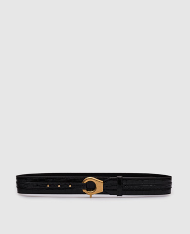 Чорний шкіряний двосторонній ремінь з монограмою логотипа