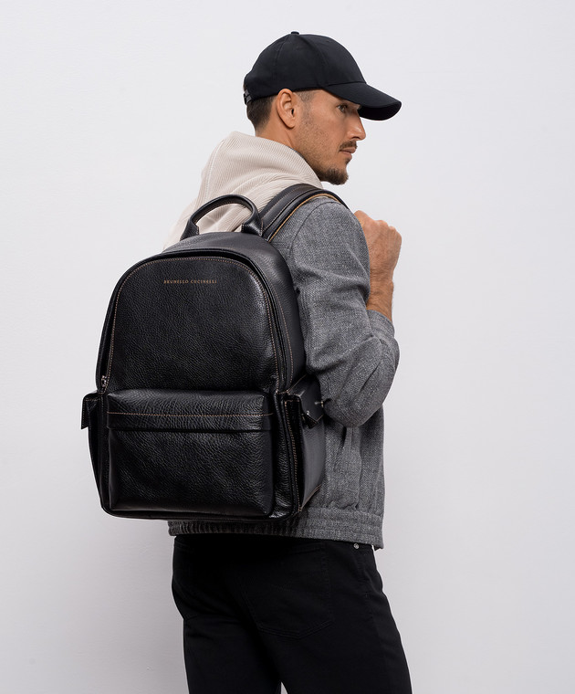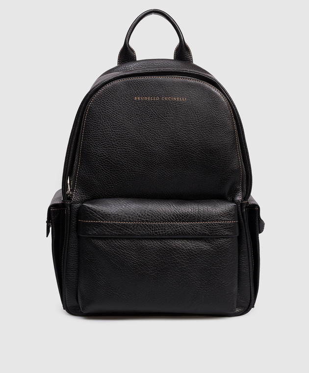Чорний шкіряний рюкзак з логотипом