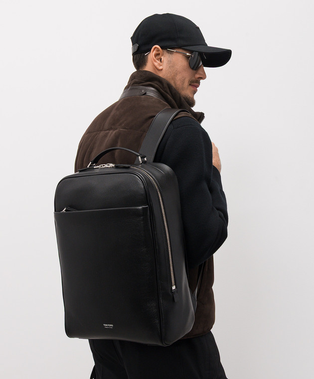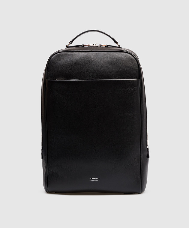 Чорний шкіряний рюкзак з логотипом