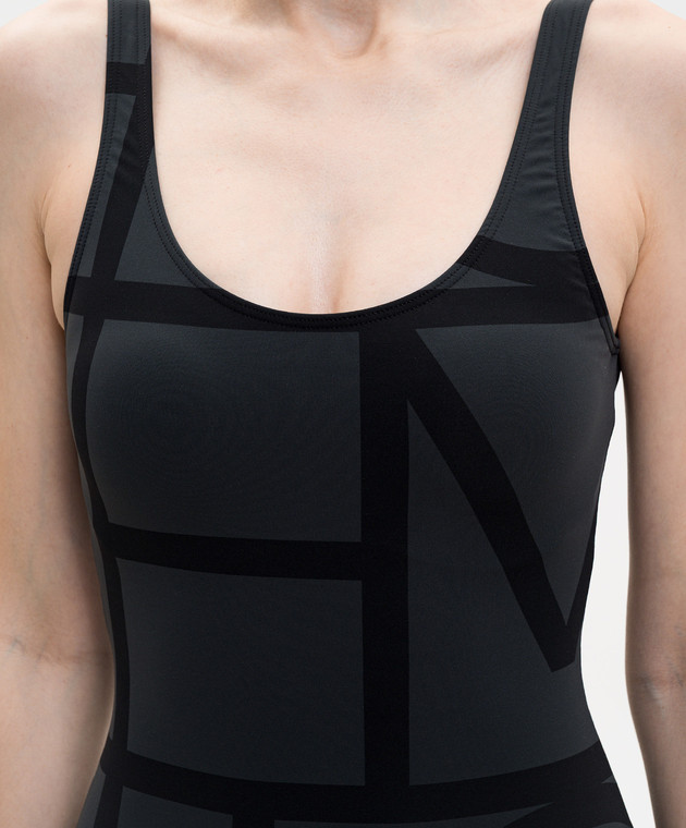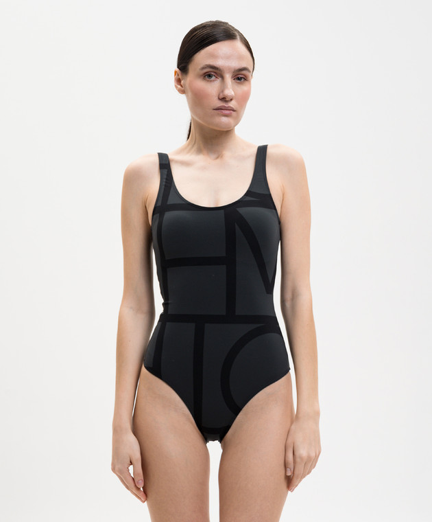 Чорний купальник з принтом монограми