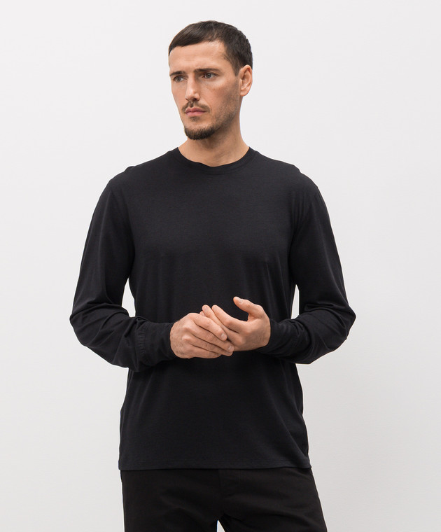 Чорний лонгслів з монограмою