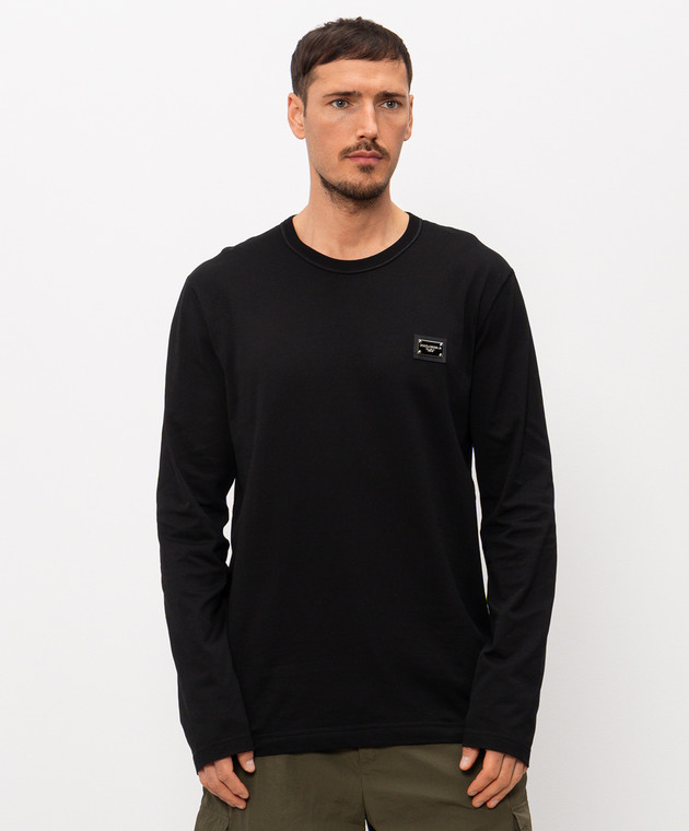 Чорний лонгслів з нашивкою логотипа