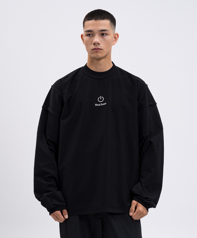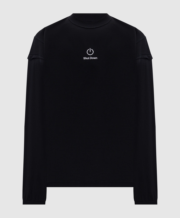 Чорний лонгслів з вишивкою напису