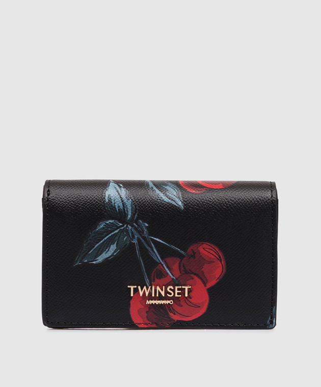 Чорне портмоне з принтом у вигляді вишень