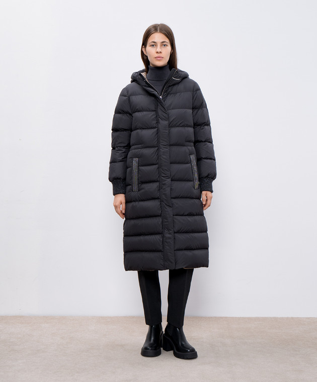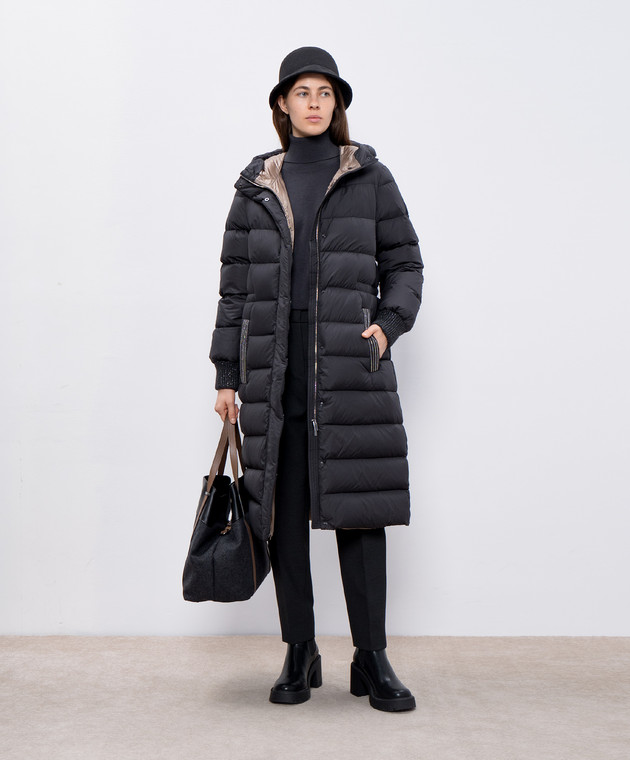 Чорний пуховик з ланцюжком моніль
