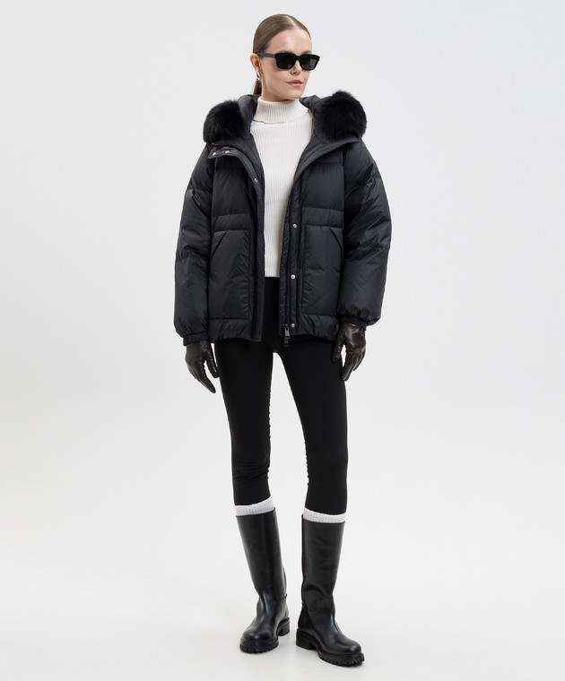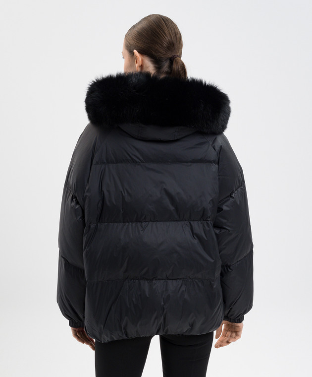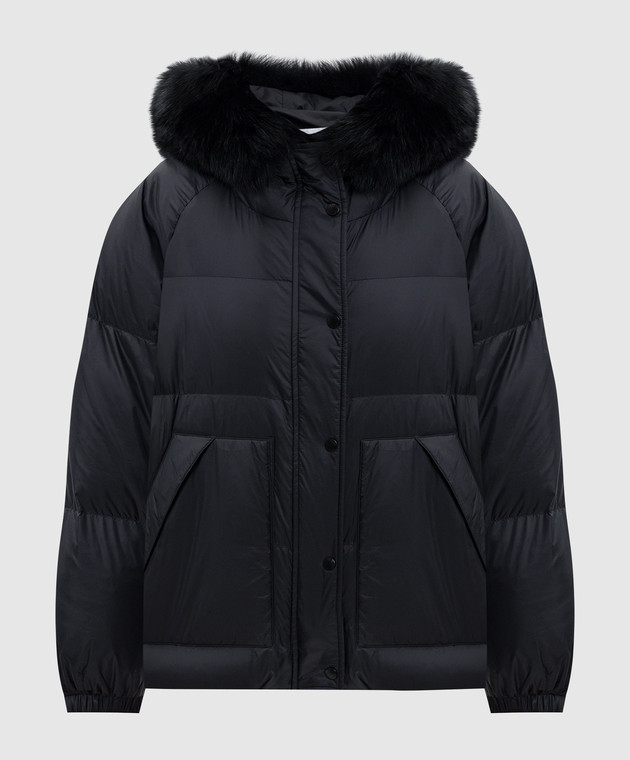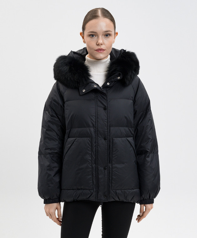 Чорний пуховик з хутром лисиці