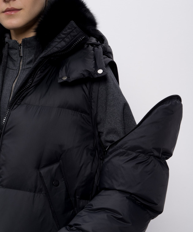 • Додатково знімний капюшон на кнопках, куліска на поясі, розрізи в бокових швах на кнопках, знімне хутро, знімні рукава на блискавках