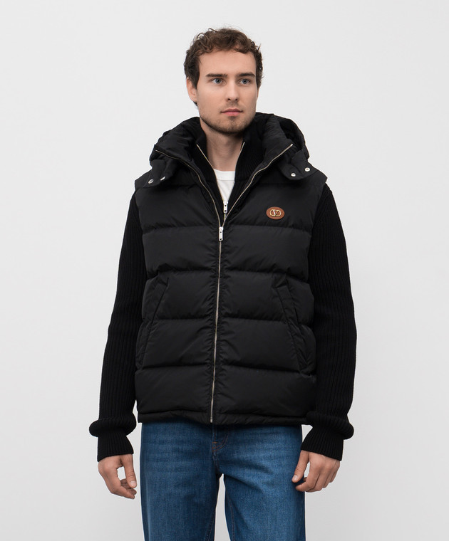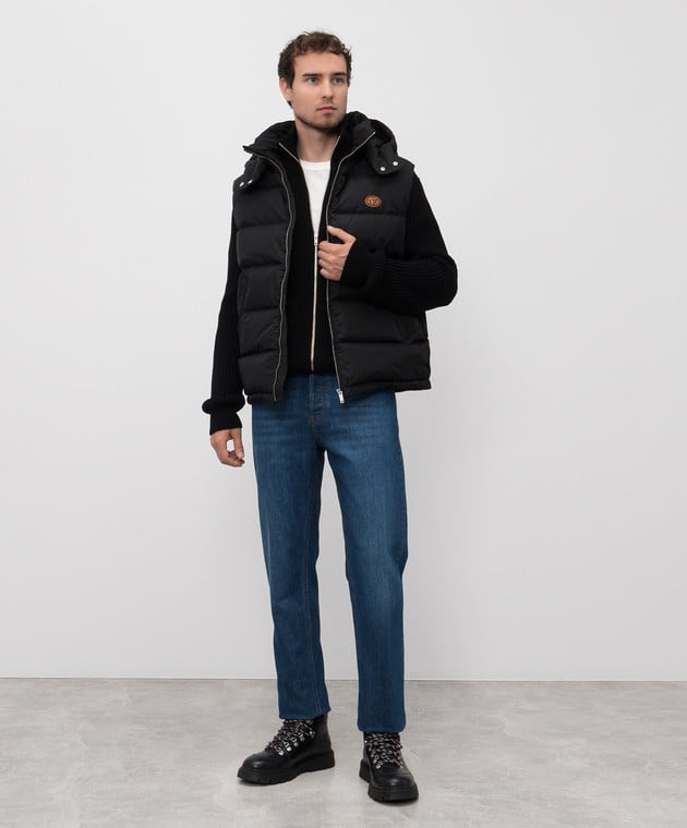 Чорний пуховий жилет з емблемою