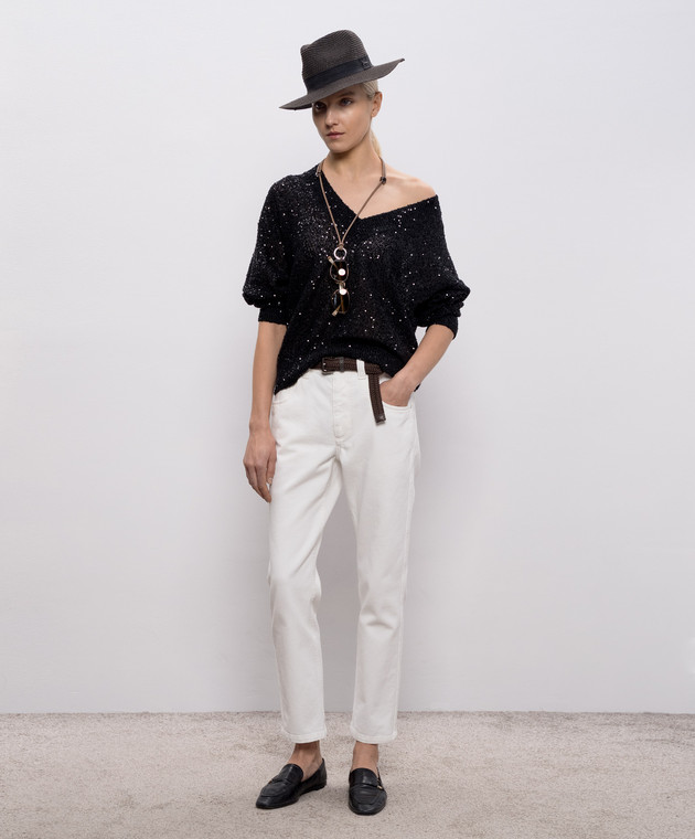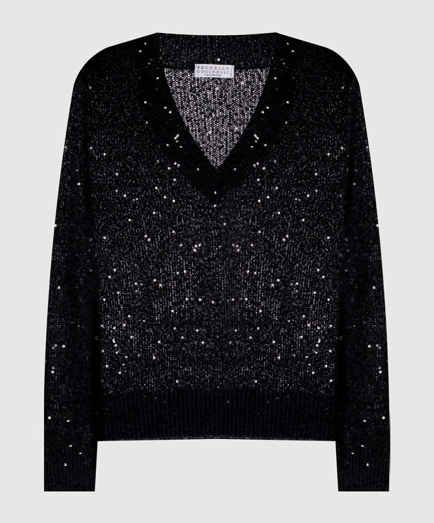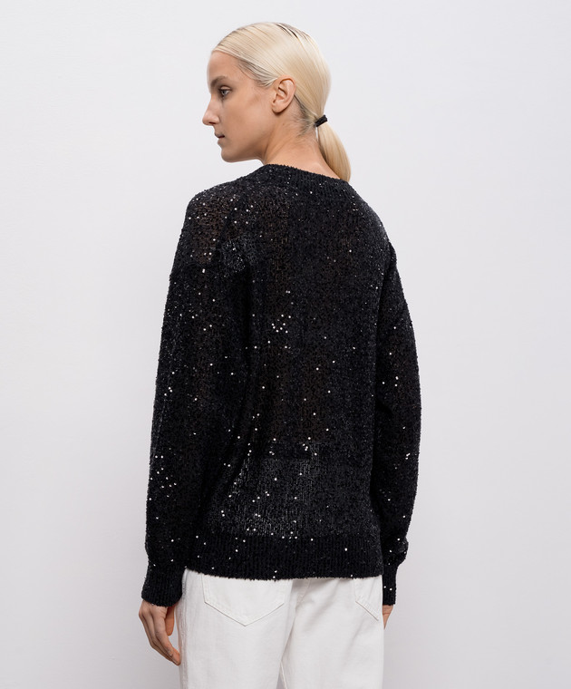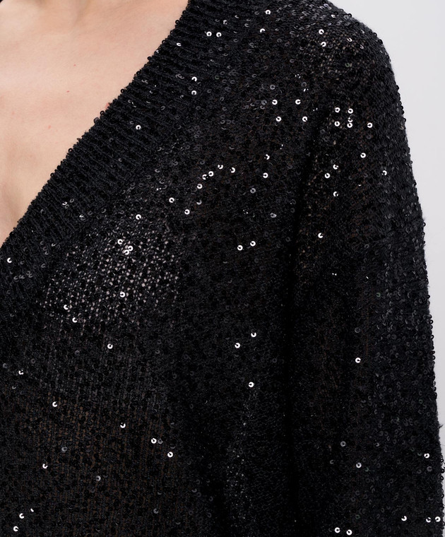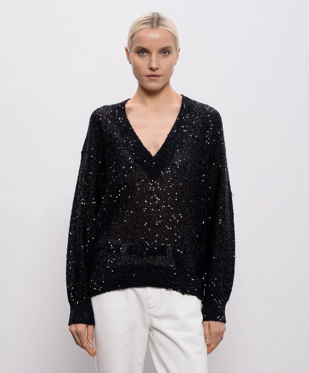 Чорний пуловер з льону, кашеміру та шовку в паєтки