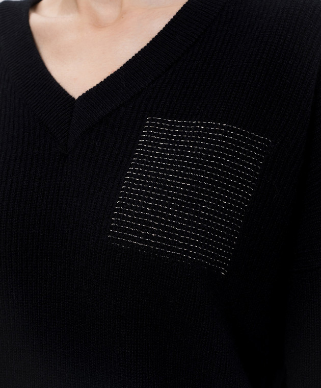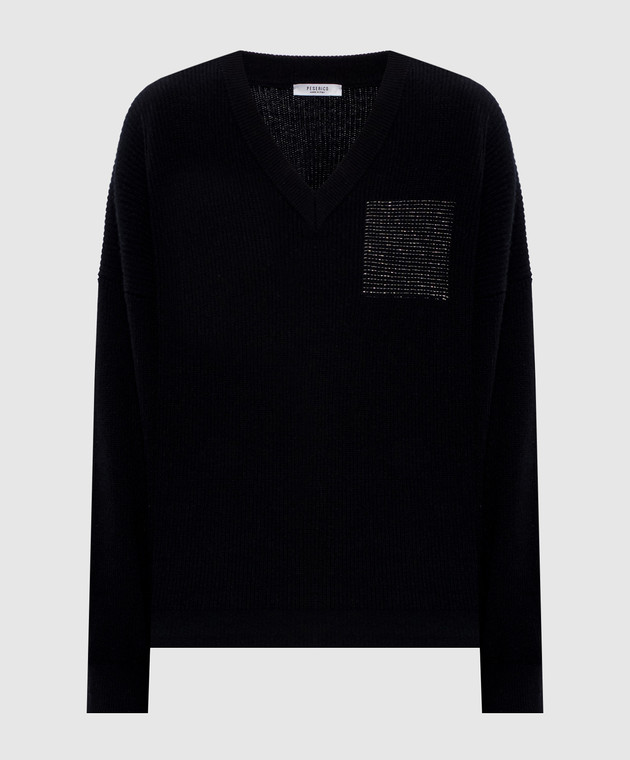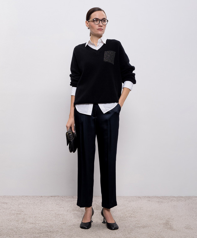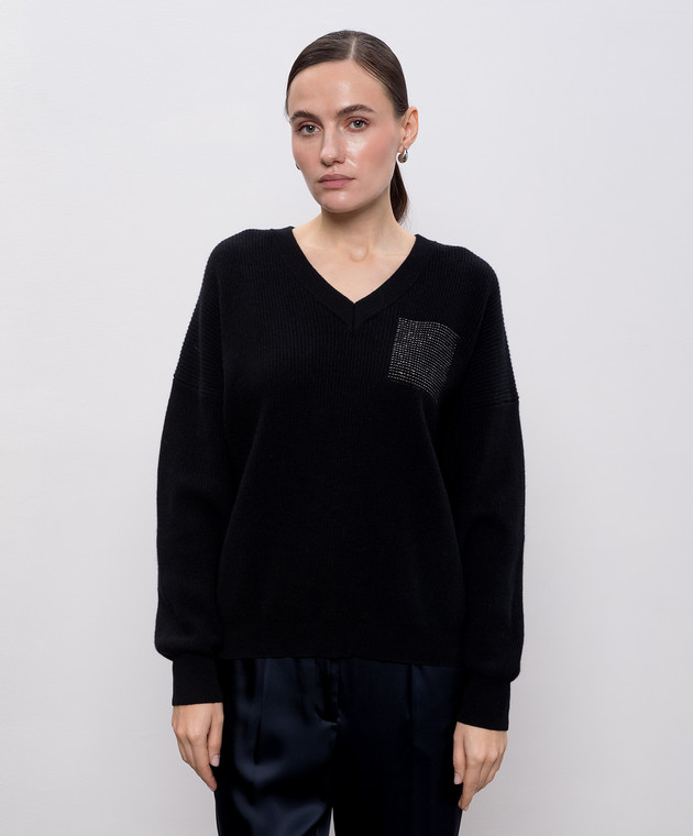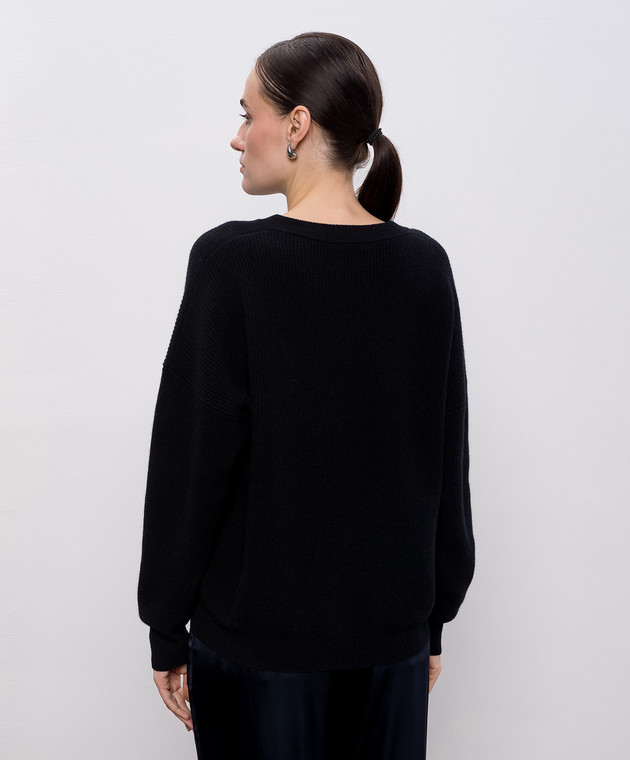 Чорний пуловер з вовни, шовку і кашеміру