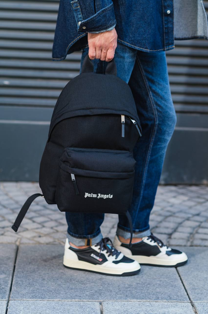 Чорний рюкзак з контрастною вишивкою логотипа