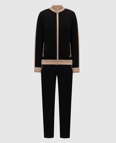 Чорний спортивний костюм з шовком з логотипом