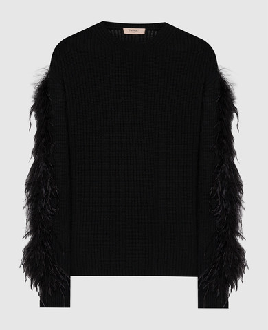Чорний светр з вовни та кашеміру у фактурний візерунок