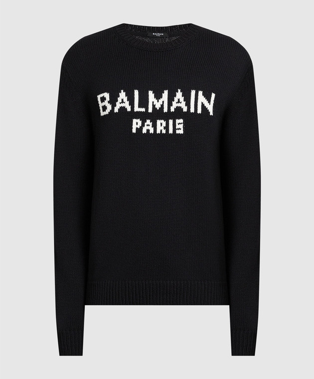Чорний светр із вовни з контрастним логотипом