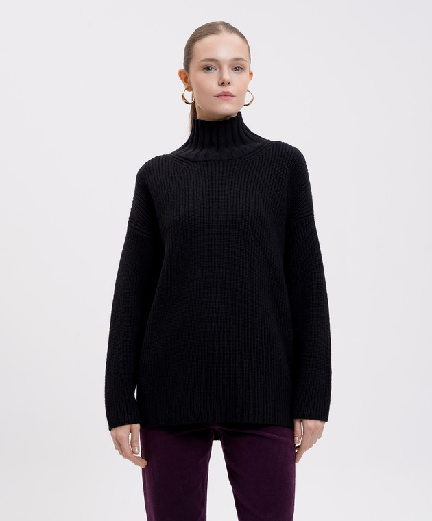 Чорний светр з вовною з логотипом