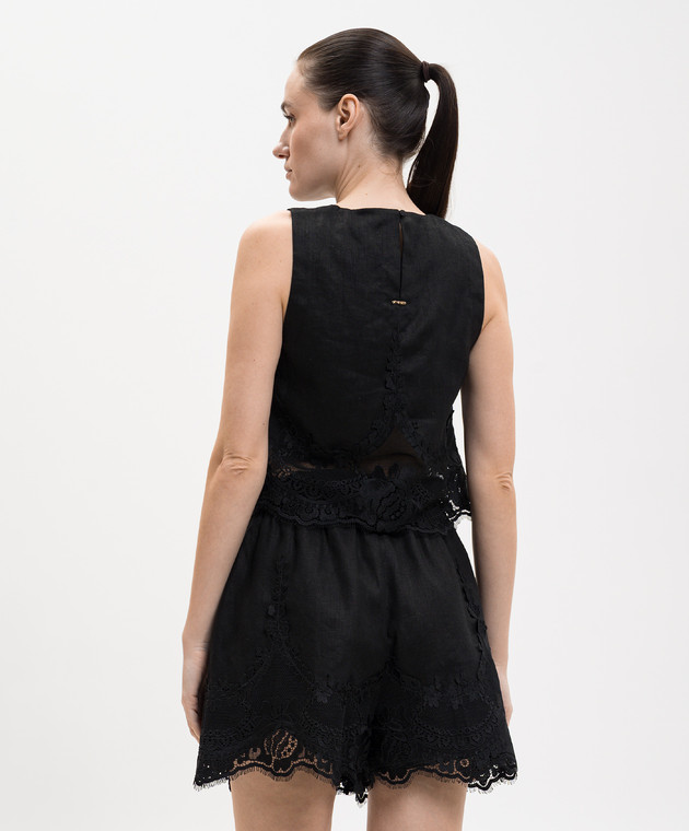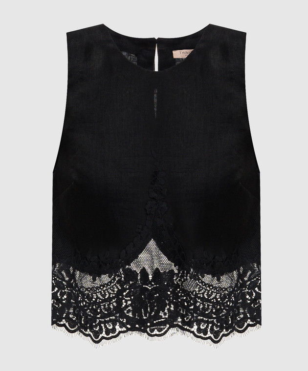 Чорний топ з льону з мереживом
