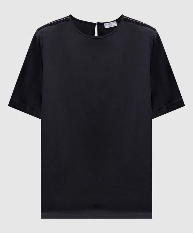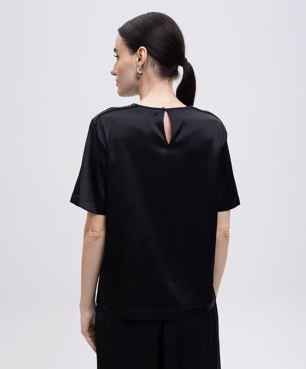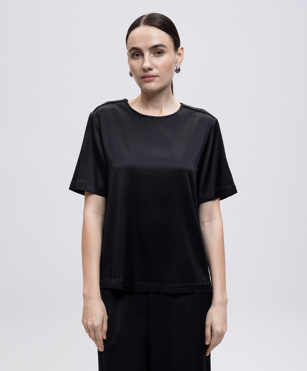 Чорний топ із шовку з ланцюжком моніль