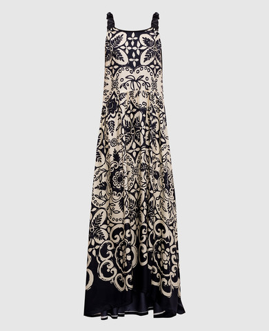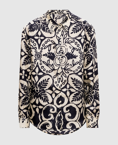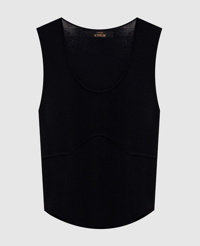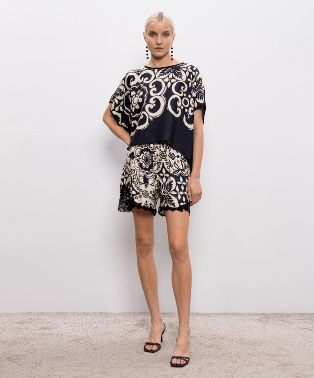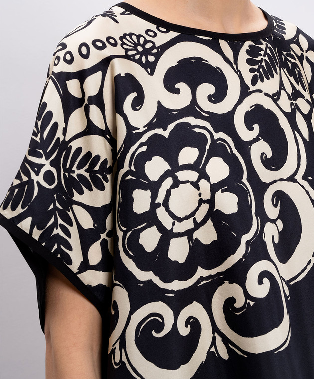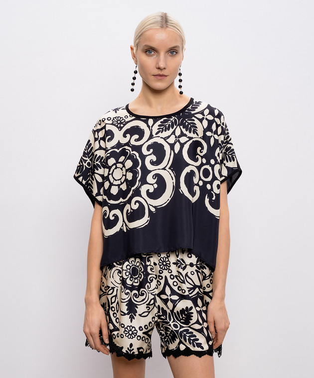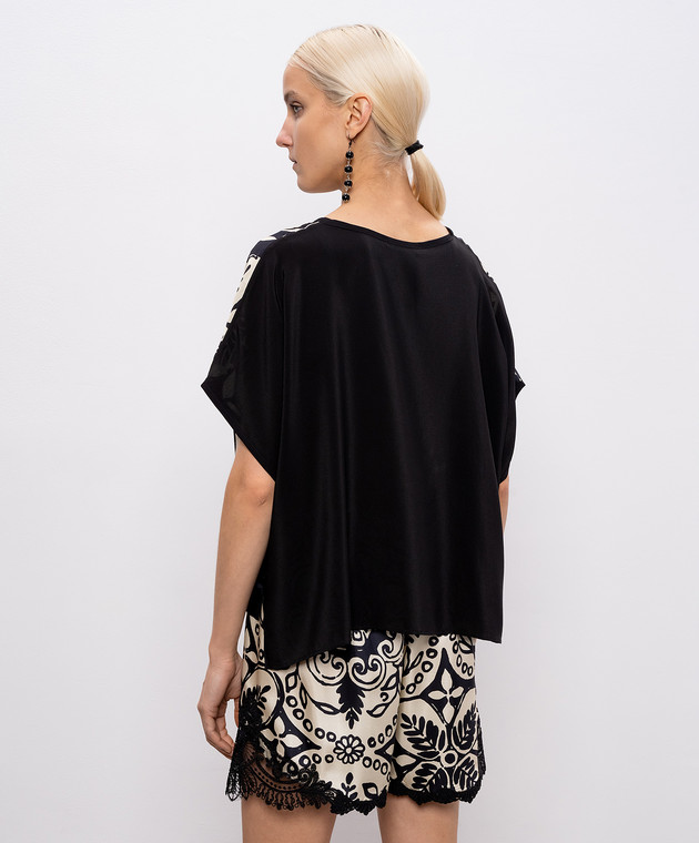 Чорний топ із шовку в принт