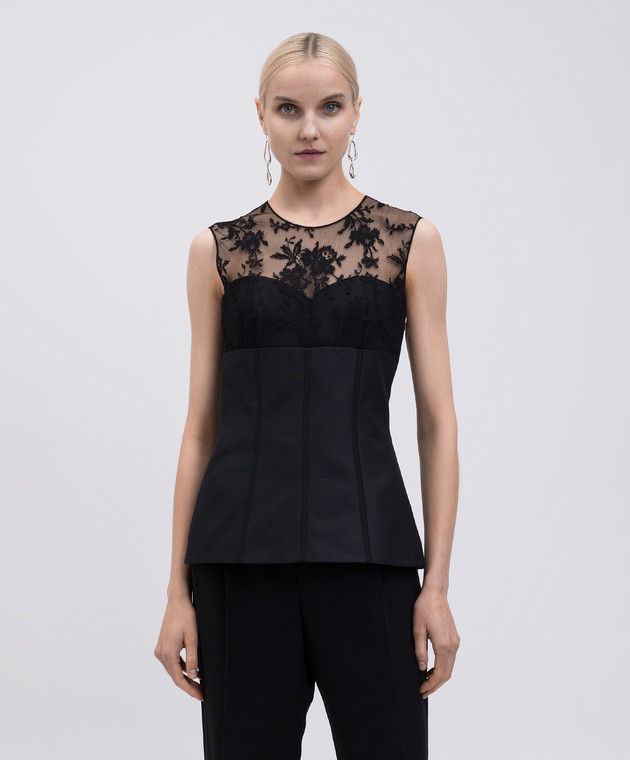 Чорний топ з шовком з мереживом
