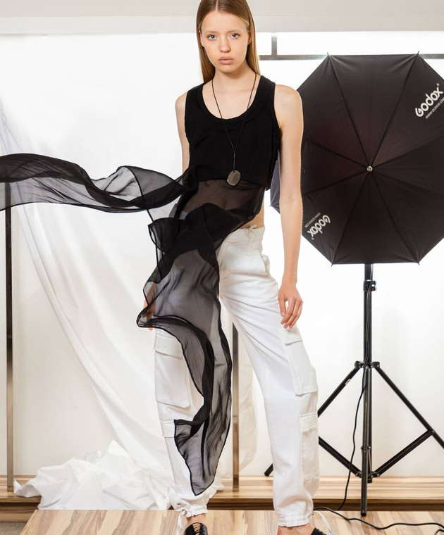 Чорний топ з шовком з необробленими краями