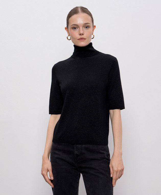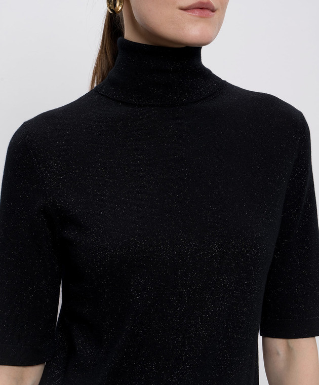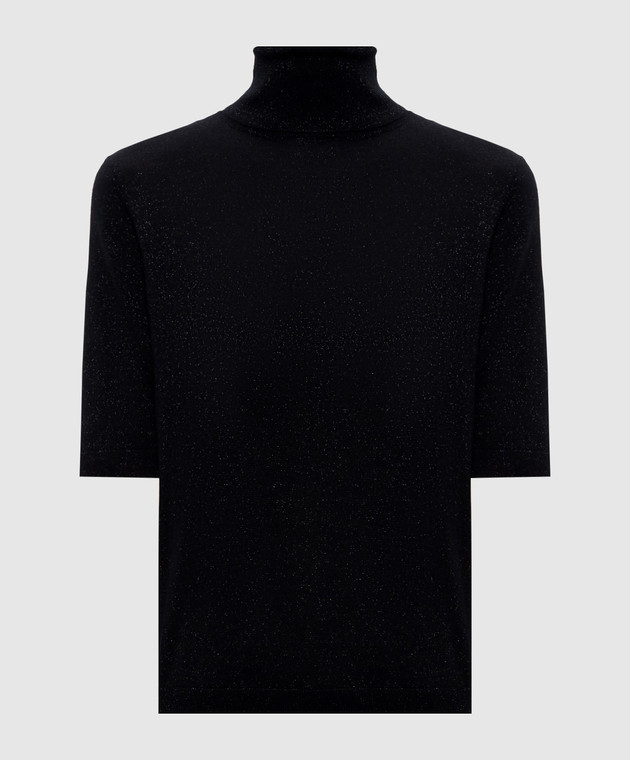 Чорний топ з вовною мериноса з люрексом