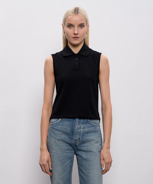 Чорний топ з коміром-поло