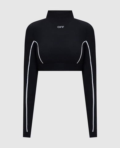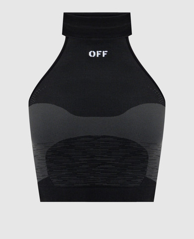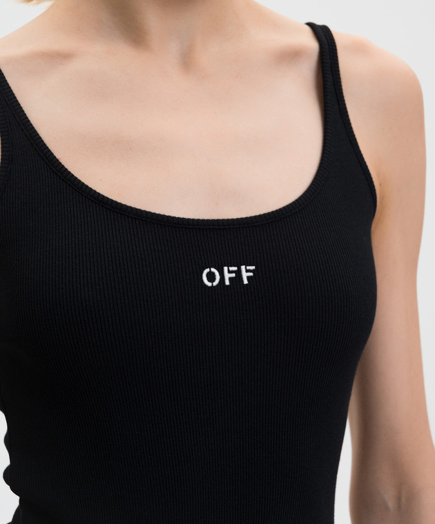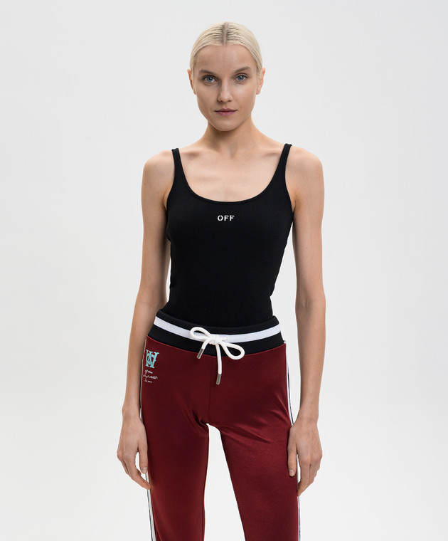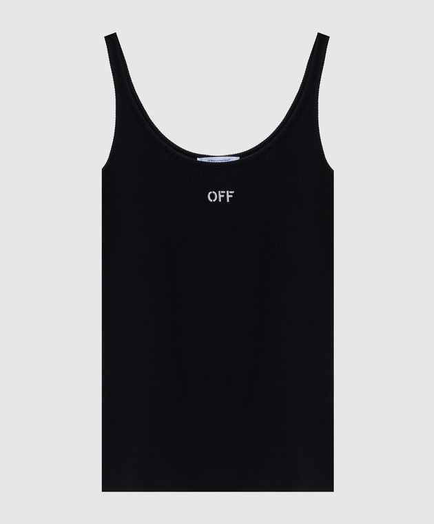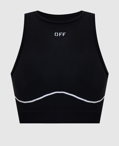 Чорний топ в рубчик з вишивкою логотипа