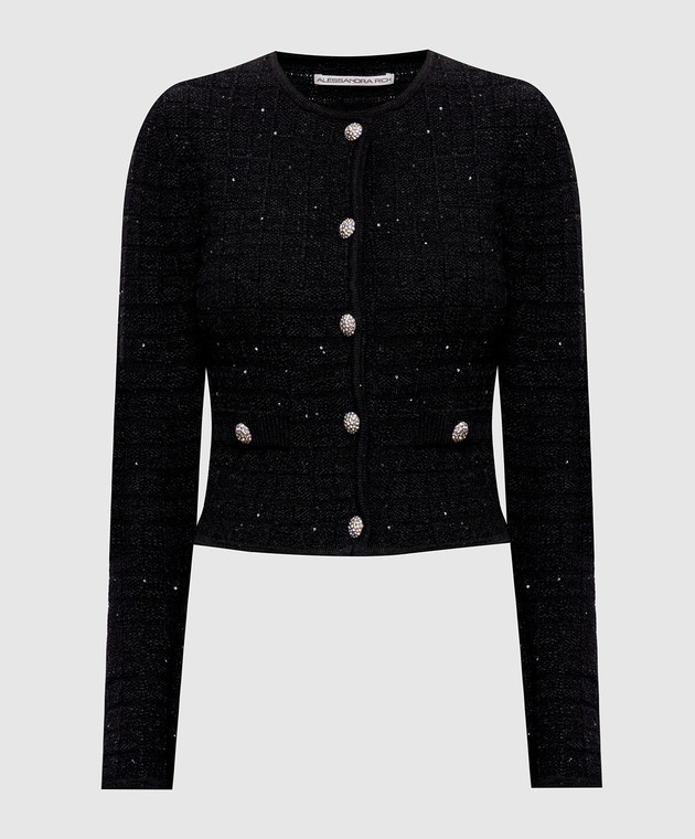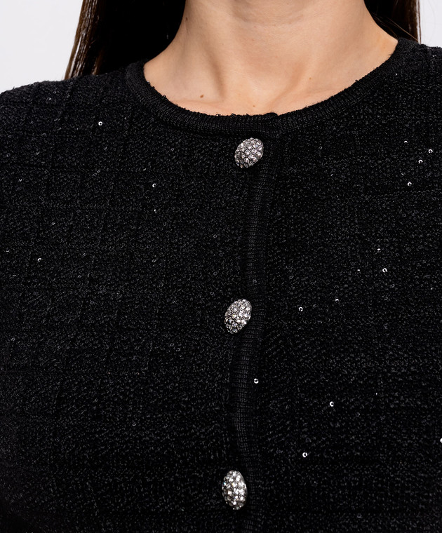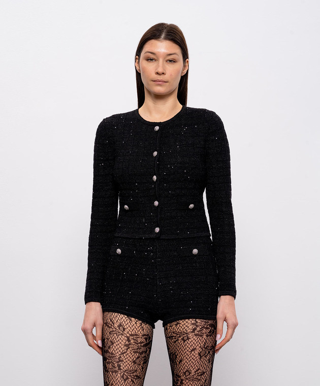 Чорний твідовий кардиган з вовною