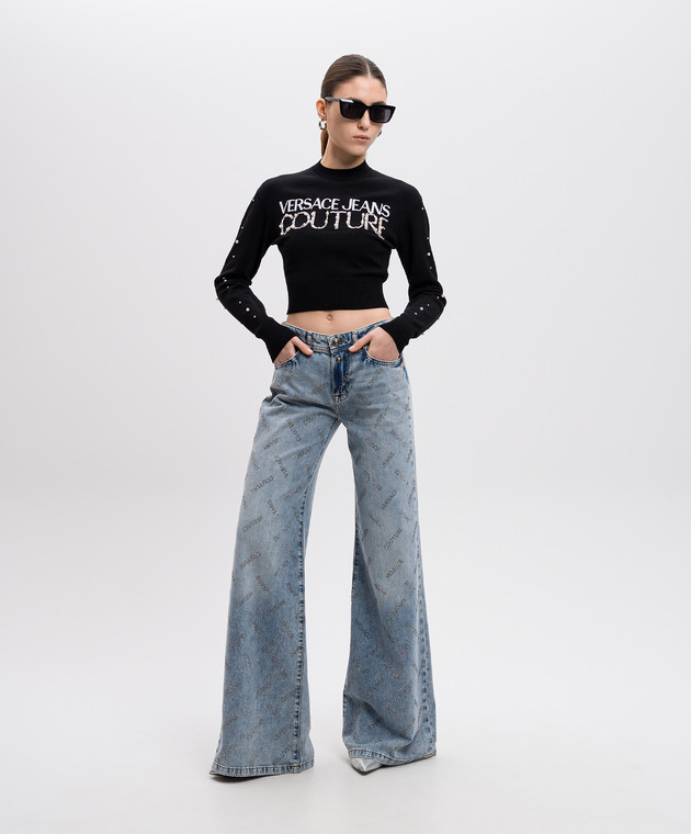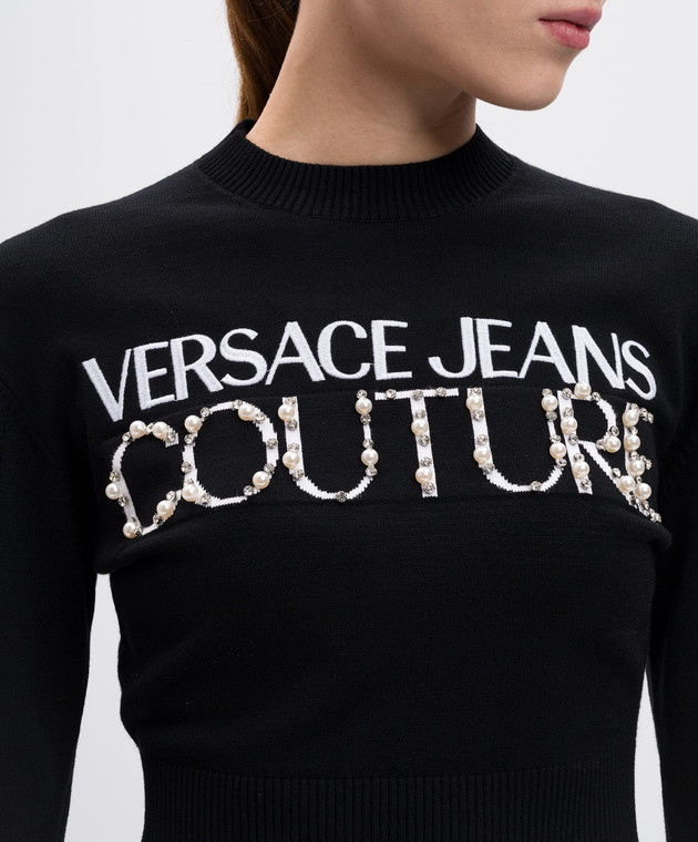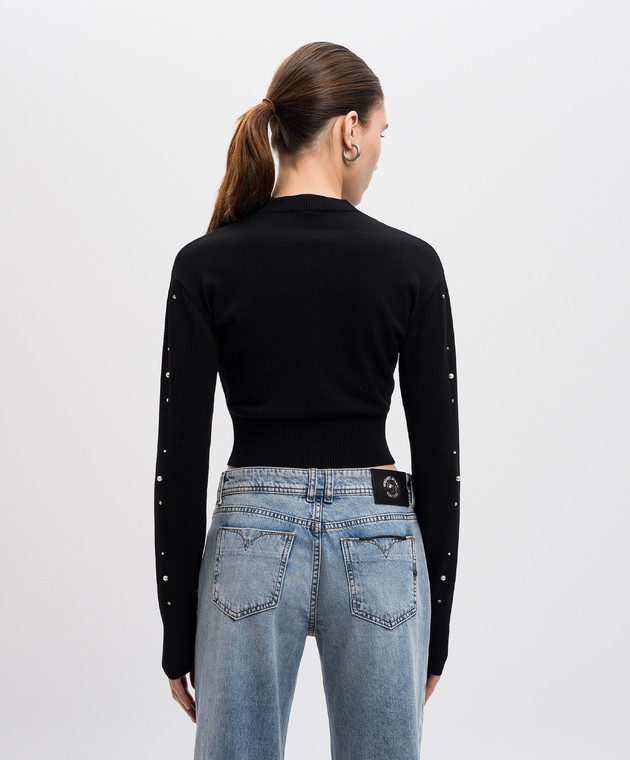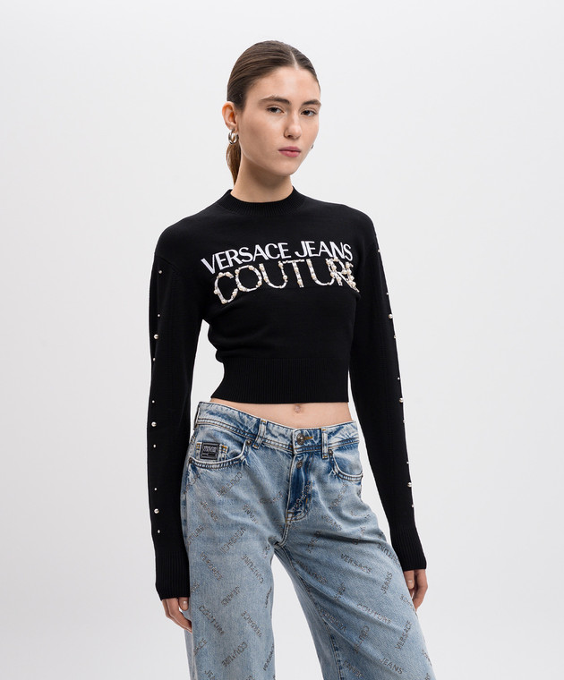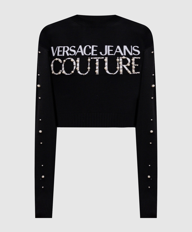 Чорний укорочений джемпер з вишивкою логотипа з намистинами