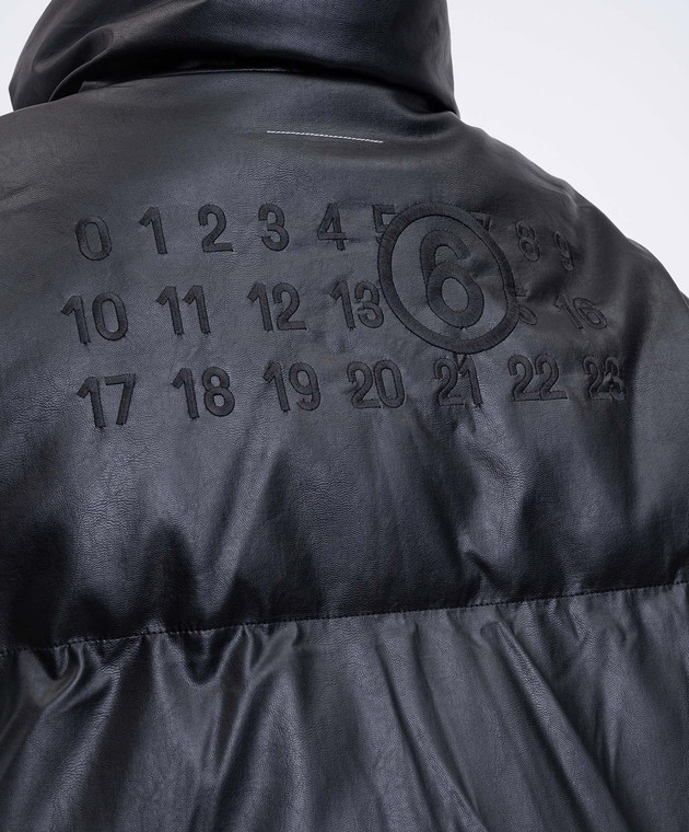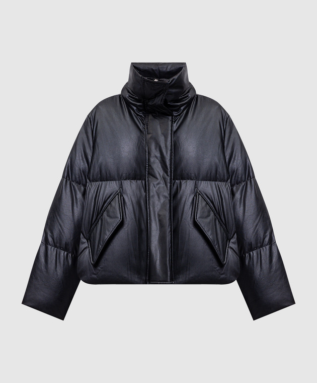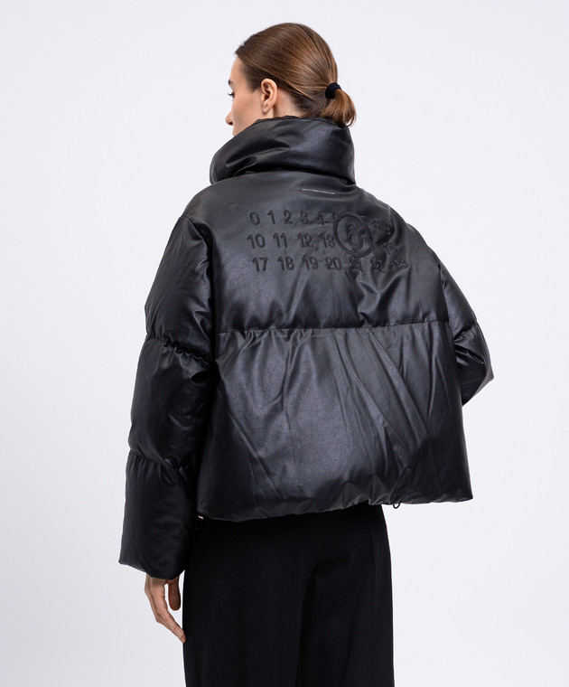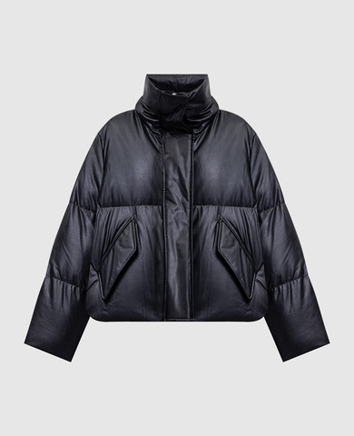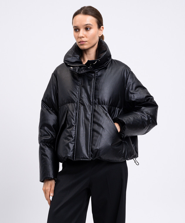 Чорний укорочений пуховик з вишикою емблеми