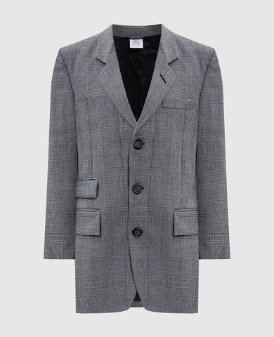 • Декор: візерунок гусяча лапка, необроблений край, нашивка логотипа, брендовані ґудзики