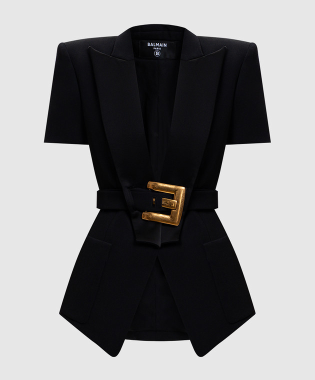 Чорний жакет з вовни з короткими рукавами