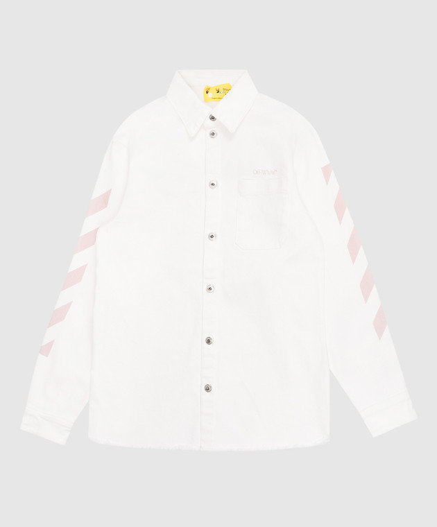 Дитяча біла джинсова сорочка з принтом емблеми