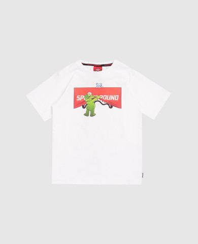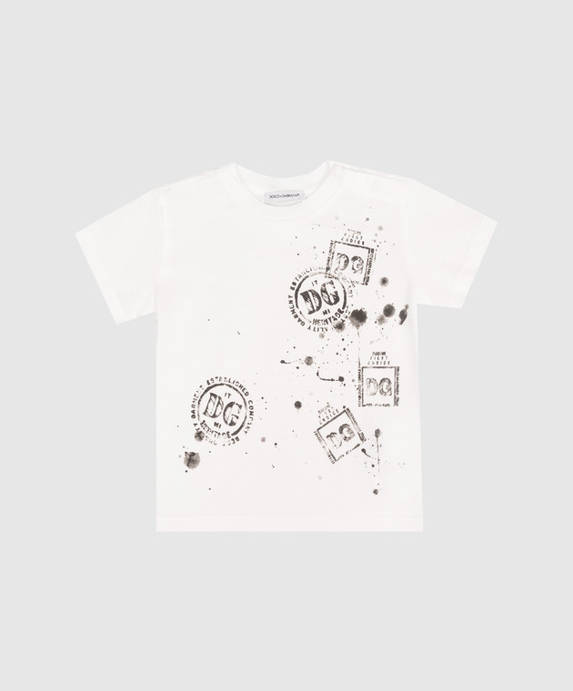 Дитяча біла футболка в брендовий принт