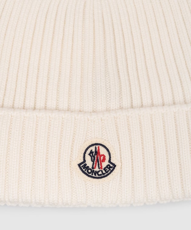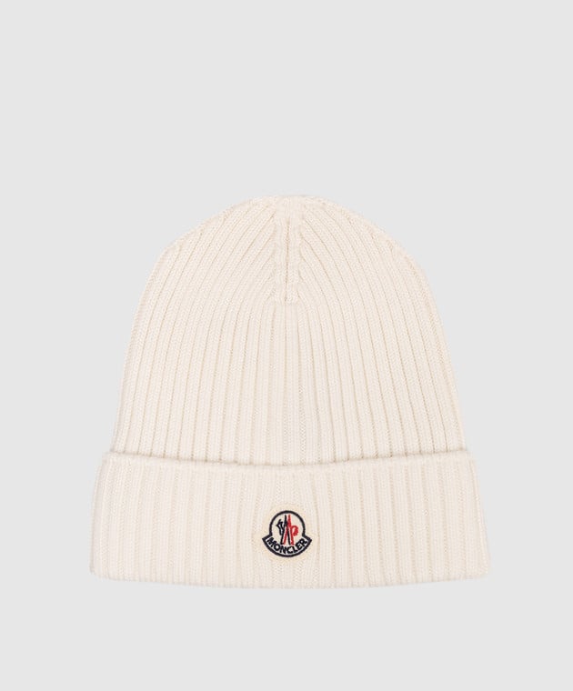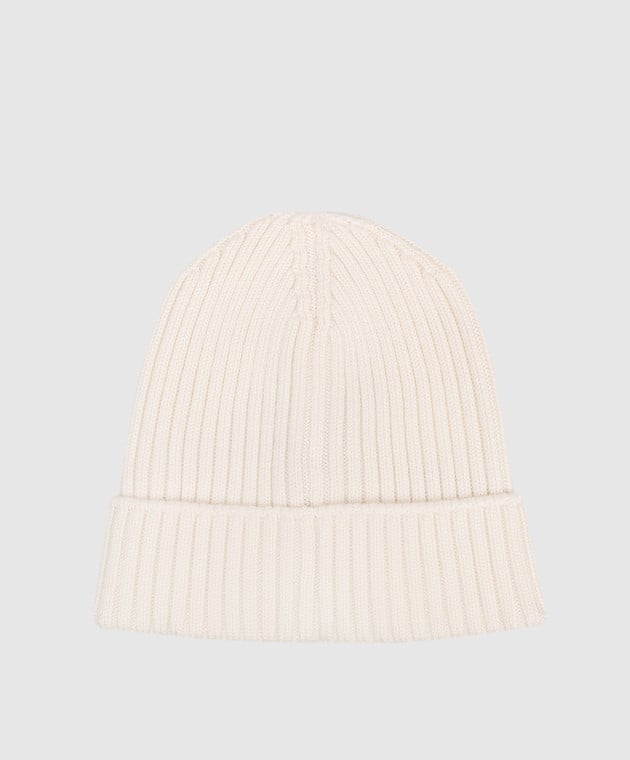 Дитяча біла шапка з вовни з логотипом