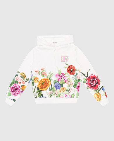 Дитяча біла спортивна куртка з квітковим принтом з монограмою логотипа