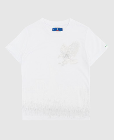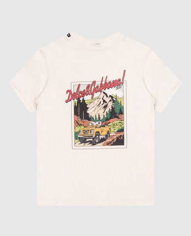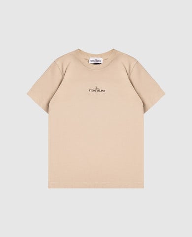 Дитяча бежева футболка з брендовим принтом