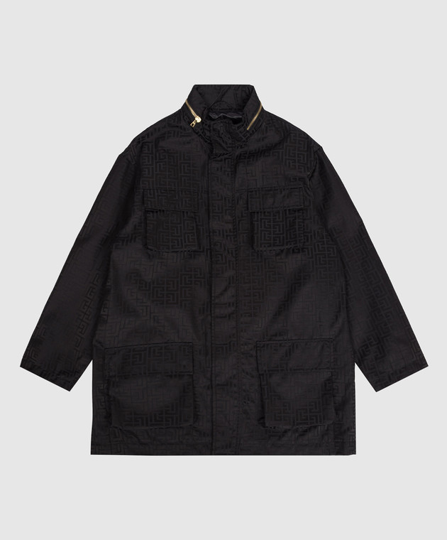 Дитяча чорна куртка в брендовий візерунок