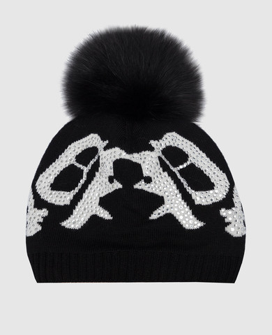 Дитяча чорна шапка з вовни меріноса з анімалістичним візерунком