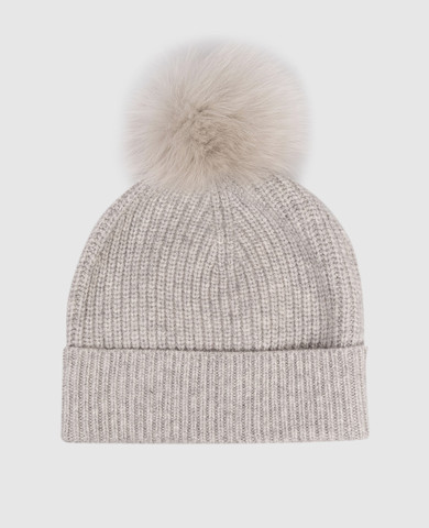 Дитяча чорна шапка-вушанка з хутром лисиці