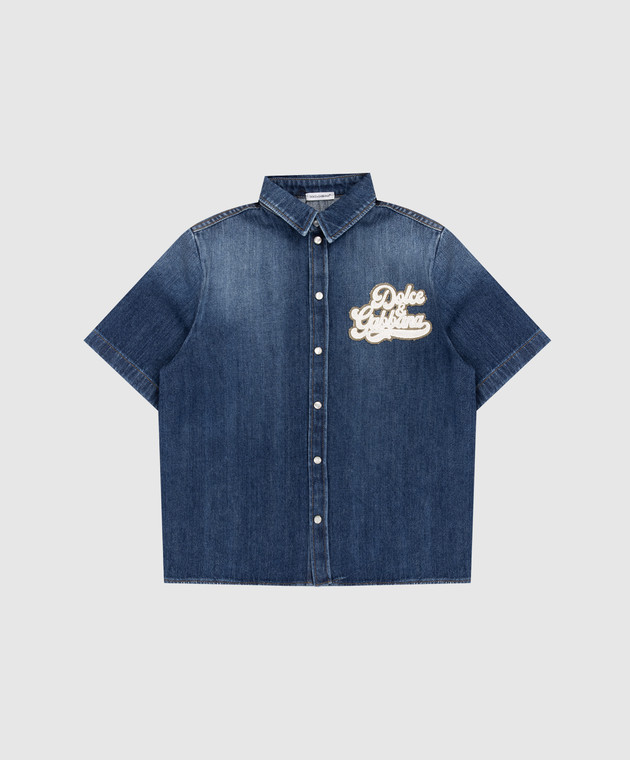 Дитяча синя джинсова сорочка з нашивкою логотипа