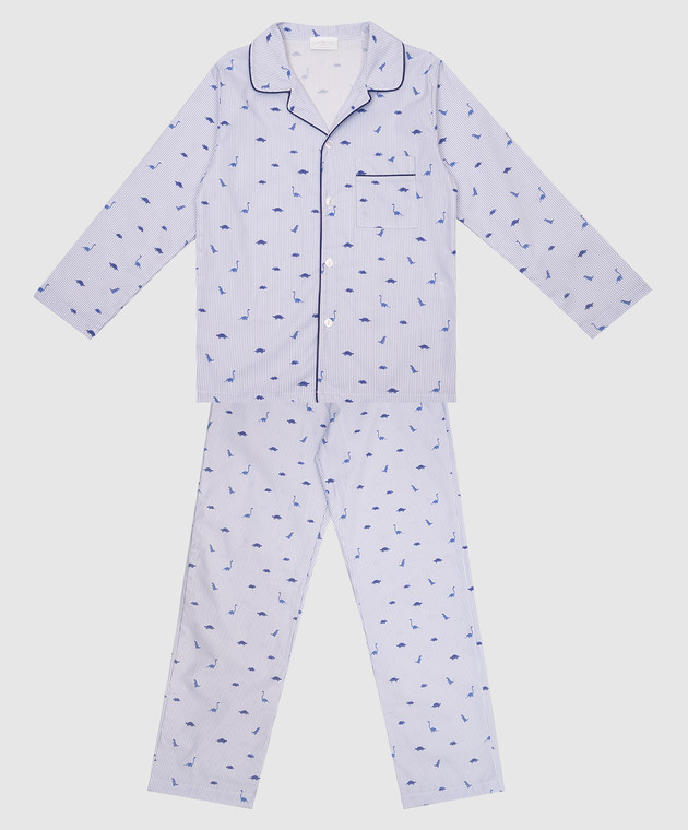Дитяча блакитна піжама в смужку з принтом