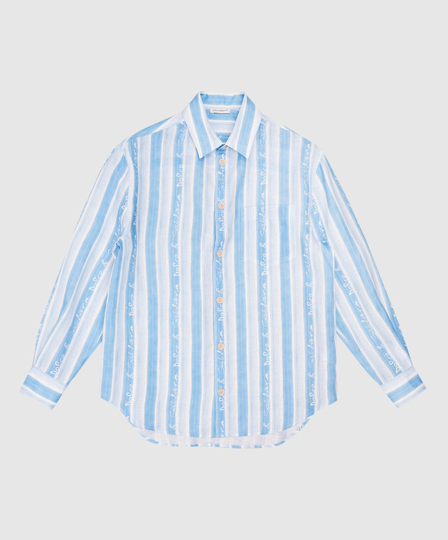 Дитяча блакитна сорочка з льону в смужку