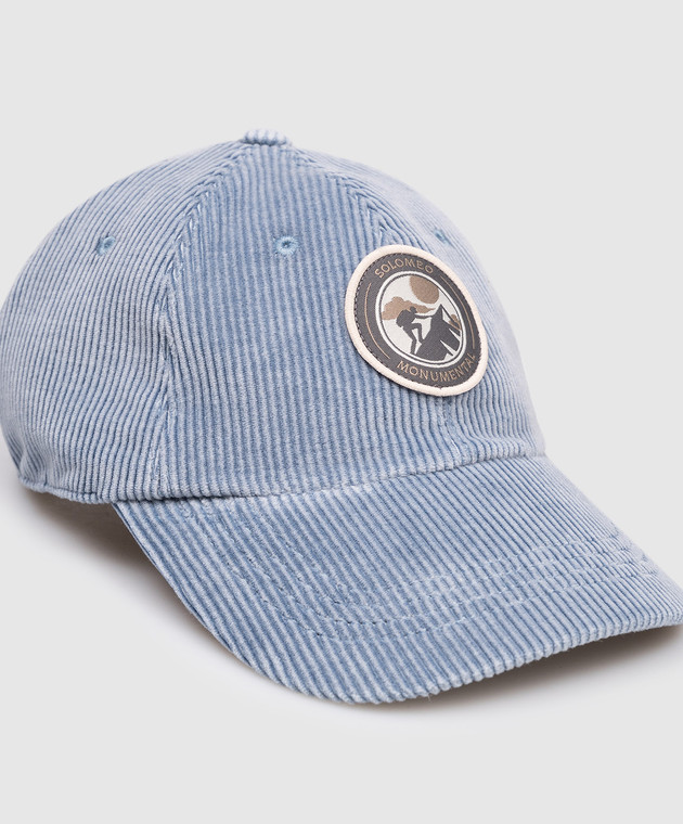 Дитяча блакитна вельветова кепка з нашивкою