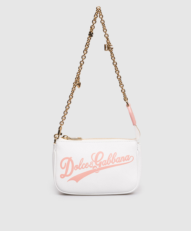 Дитяча біла шкіряна сумка з принтом логотипа