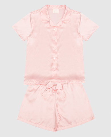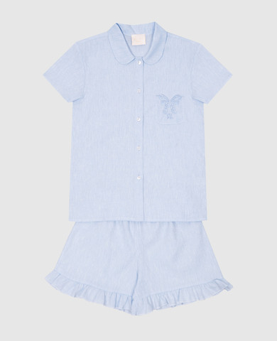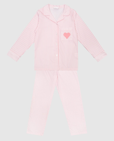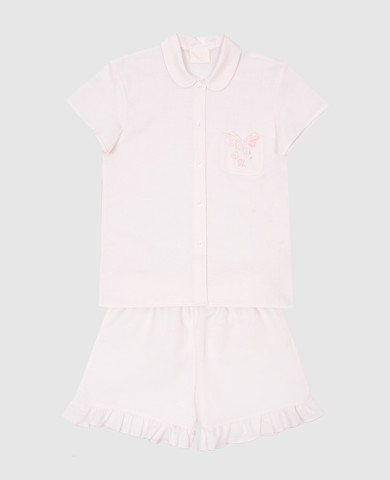 Дитяча рожева піжама з льоном з вишивкою логотипа