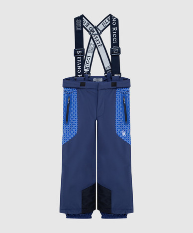 Дитяча синя парка з хутром лисиці з брендовими нашивками